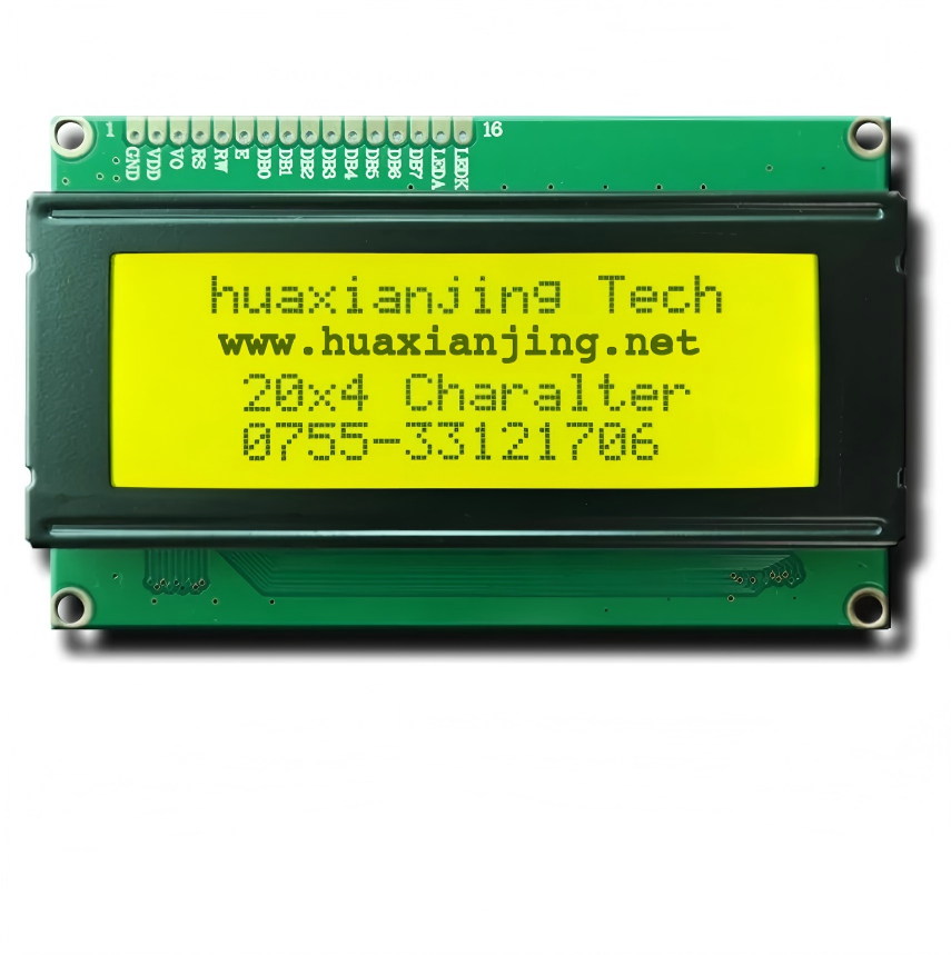 20×4 Character Display (STN-Y/G Positive) – Clear text with bright contrast.