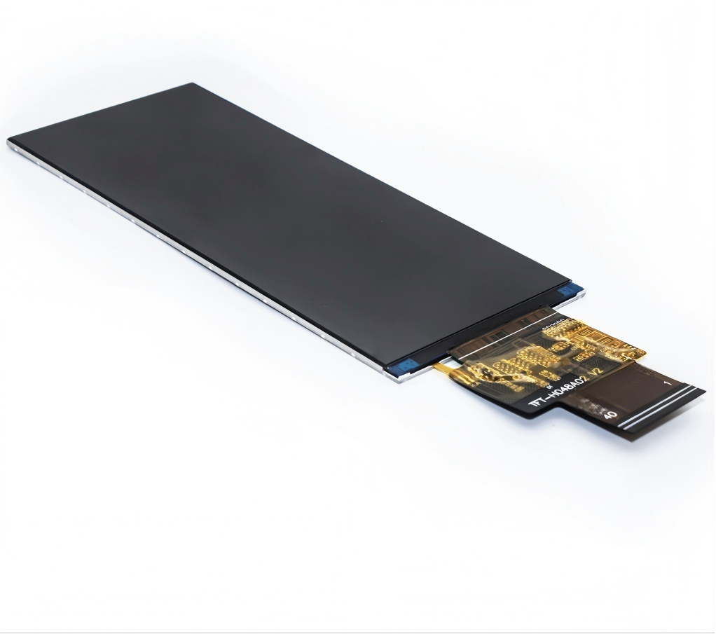 This 4.6-inch bar-type TFT LCD module (model TFT046AQV8466ANT) is designed for next-generation industrial, commercial, and smart appliance interfaces requiring a slim, vertically oriented display. With an ultra-tall aspect ratio and 46.57 × 118.32 mm active area, the module offers exceptional clarity for text, icons, and segmented layouts. Built with an ST7701S display driver and operating at 2.8 V ±0.3 V, the display ensures stable performance, low power consumption, and smooth color rendering for modern embedded systems. A bright white LED backlight (If = 40 mA at 12 V) provides excellent readability across diverse lighting environments. Designed to operate reliably from –20 °C to 70 °C, this module is ideal for rugged industrial devices, smart home terminals, and handheld equipment that require a durable, high-contrast visual output.